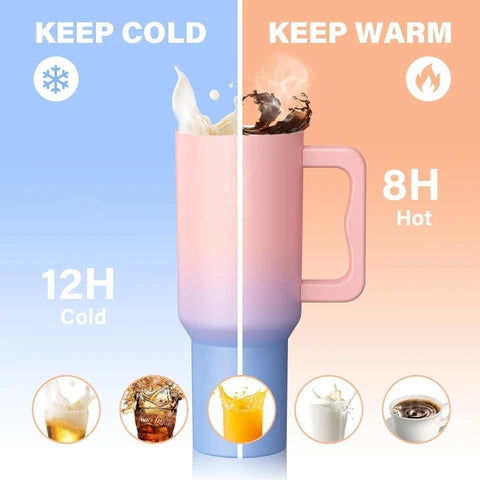 Stay hydrated all day with the Eclaraa Bliss 40oz Tumbler. Made from premium stainless steel, it keeps drinks cold for hours with a leak-resistant lid, reusable straw, and easy-carry handle. Perfect for coffee, water, smoothies, travel, gym, and daily use.