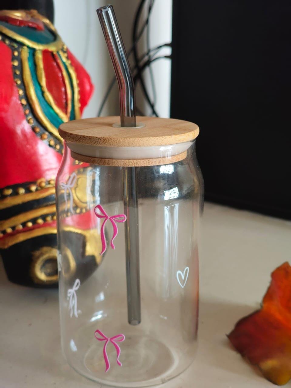 Make every sip sweet and stylish with our Bow Sipper , a 540ml / 16oz round glass tumbler with lid and straw, featuring an adorable all-over bow UVDTF print. This cup is a perfect blend of cuteness and function, made to brighten your mood with every drink.